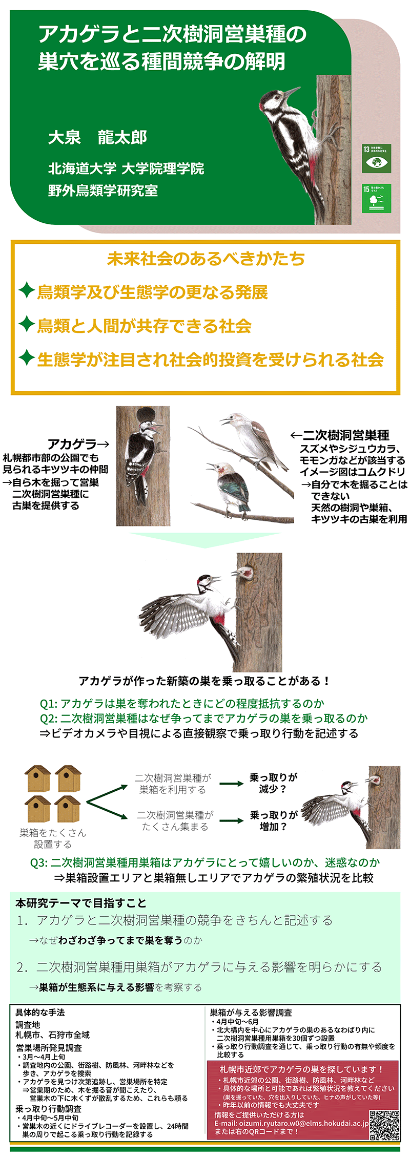 アカゲラと二次樹洞営巣種の巣穴を巡る種間競争の解明