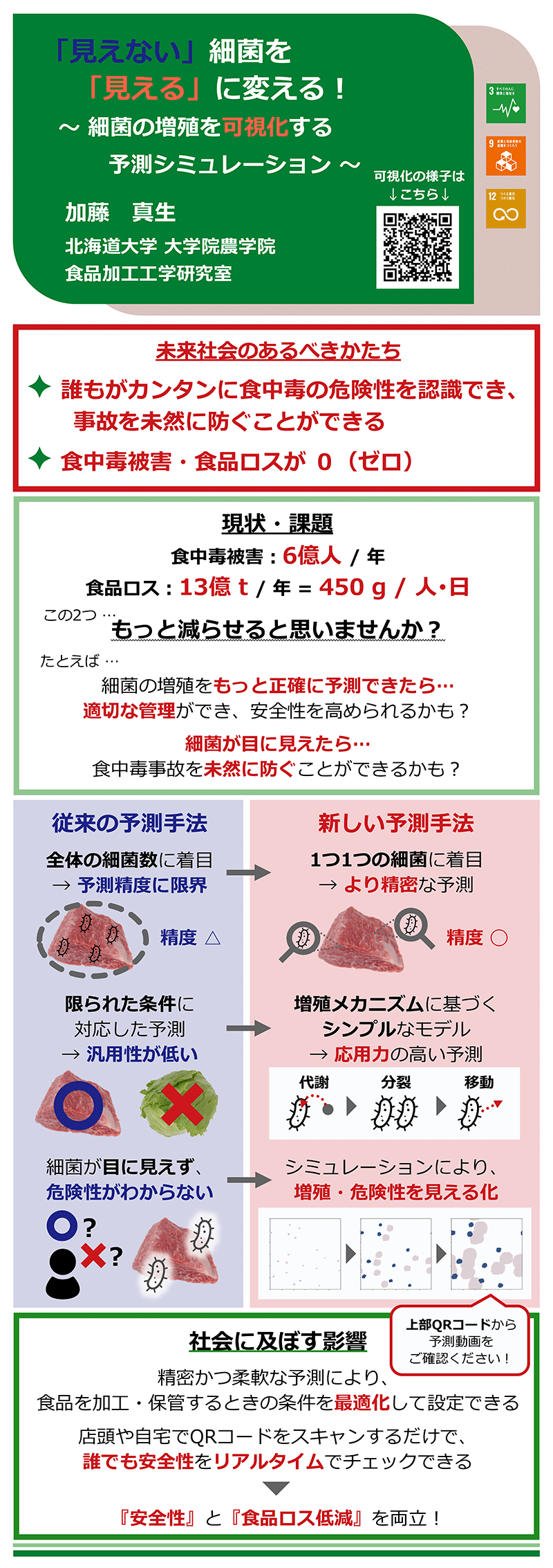 30. 加藤 真生 2025年12月2日 最終更新日時 : 2025年12月2日 pontani 「見えない」細菌を「見える」に変える!︎〜 細菌の増殖を可視化する予測シミュレーション 〜 KATO Masaki : 農学院