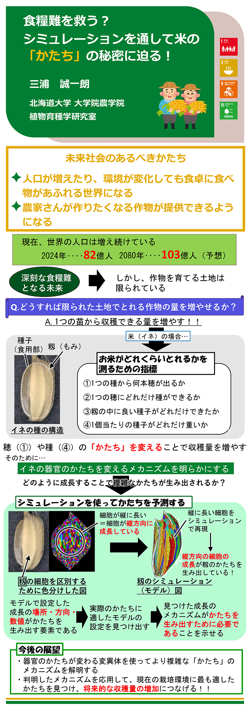 33. 三浦 誠一朗 2025年12月2日 最終更新日時 : 2025年12月16日 pontani 食糧難を救う? シミュレーションを通して米の「かたち」の秘密に迫る! MIURA Seiichiro : 農学院