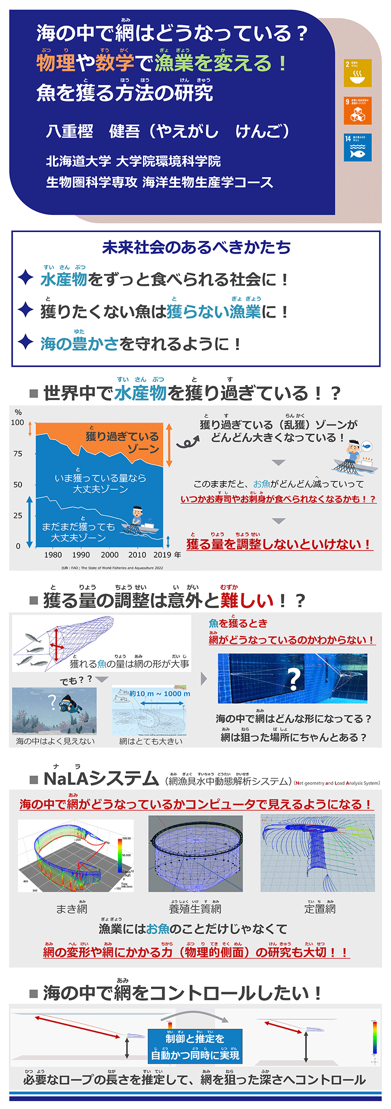 43. 八重樫 健吾 2025年12月2日 最終更新日時 : 2025年12月2日 pontani 海の中で網はどうなっている?物理や数学で漁業を変える!魚を獲る方法の研究 YAEGASHI Kengo : 環境科学院