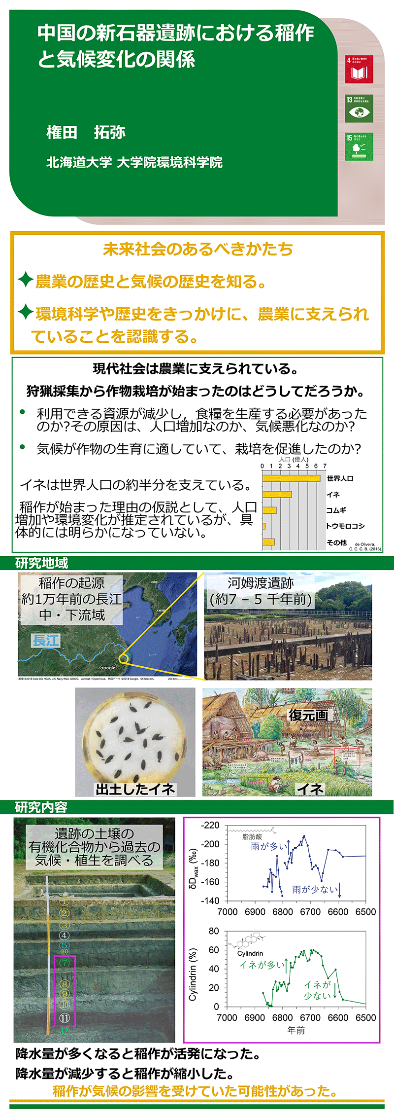 中国の新石器遺跡における稲作と気候変化の関係