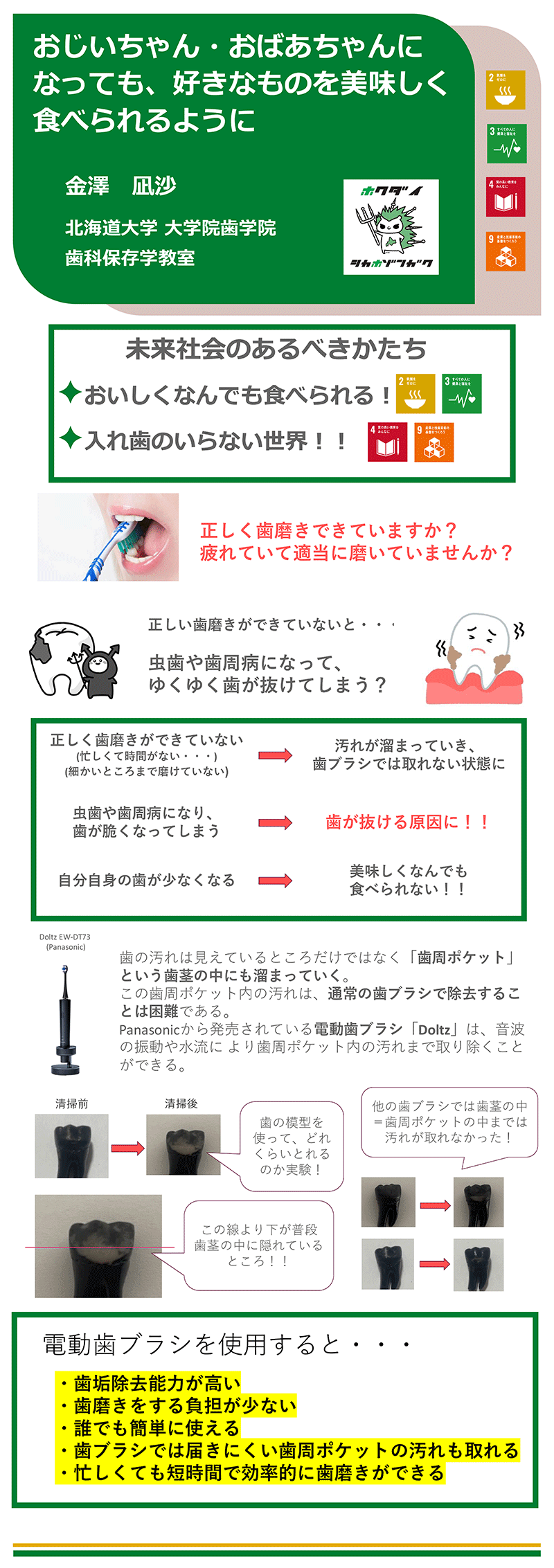 63. 金澤 凪沙 2025年12月2日 最終更新日時 : 2025年12月18日 pontani おじいちゃん・おばあちゃんになっても、好きなものを美味しく食べられるように KANAZAWA Nagisa : 歯学院